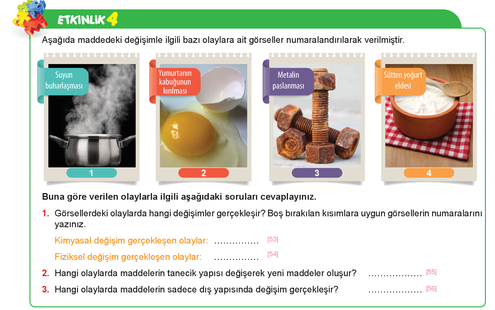 F.8.4. Madde ve Endüstri / Madde ve Doğası / F.8.4.2. Fiziksel ve Kimyasal Değişimler